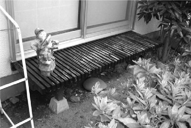 ぬれ縁は常に雨風にさらされているため汚損や腐食を受けやすいものです。木材の腐食したまま放置しておけばシロアリを招きかねません。今回は木製ではなくひのき模様の色調のアルミ製のぬれ縁を選定。庭の景観にもしっくりと調和しているように感じました。内と外を結ぶ空間として、庭との関係性を豊かにしてくれると思いますので、憩いのスペースとして長い間お使い頂けるのではないでしょうか。