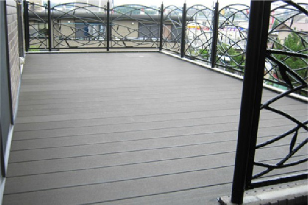 外壁の色合いとフェンス・ブロック・ウッドデッキがマッチしていて、とても素敵な仕上りです。優雅でシャープな造形のアルミ鋳物フェンスは重厚感があり、全体的に引き締まった印象を受けます。ウッドデッキはフロアレベルだと思われますので室内との一体感もあるのではないでしょうか。またブロック天端とウッドデッキがほぼ同レベルということも開放感を演出し、眺めも良くくつろぎのバルコニーになっています。