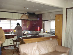- 断熱改修で夏は涼しく、冬は暖かいお部屋に。ダイニングには使い勝手の良いバックカウンターと家事スペースを設けました。