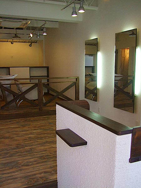 美容室には入りやすい外観とくつろげる内装が大切だと思います。全面ガラス張りで中の様子が見え、ウッド調であたたかさもあり、素敵な外観で初めてでも親しみやすい印象です。白い店内でいたるところに木目を生かした造作が施してあり、ツートンカラーで雰囲気のよいお店に仕上がっていると思います。構造物の魅せ方や、空間の使い方がとても素敵です。築40年とは感じられない、おしゃれな空間になっていると思います。
