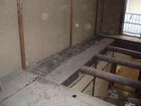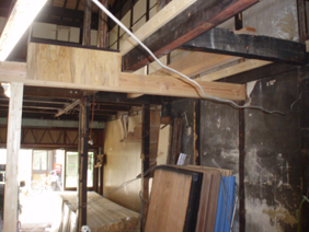 - 既存梁の下から集成材を抱き合わせ、接着し、ボルト等で止め付けました。
