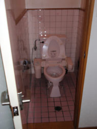 - 臭いが気になるということで、壁にはエコカラットを使用。使いやすさと機能も抜群のタンクレストイレでお掃除も楽ちんです。これで気兼ねなくお客様をご案内出来ますね。