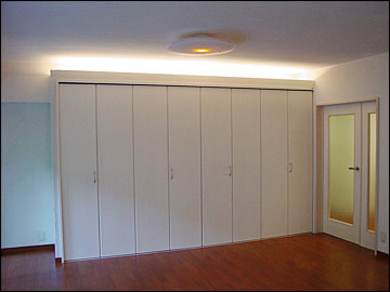 お洒落なライティング効果を出すために、クローゼット上部に照明を設置しました。