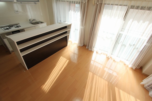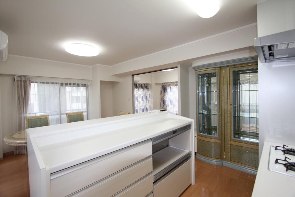 - リビングとキッチンの間に、カップボードを設置。