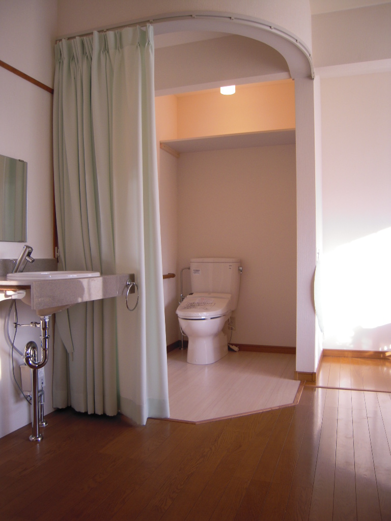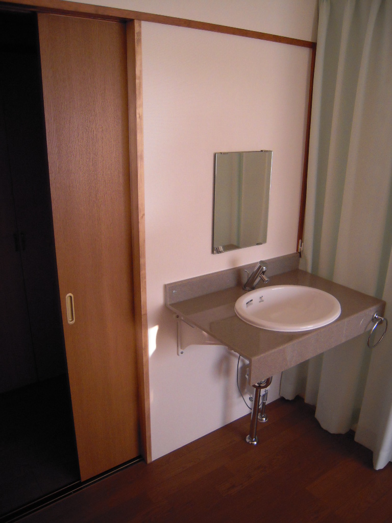 寝室に車椅子で利用出来るトイレ、洗面を設置