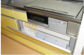 かわいらしくてさわやかな気分で使えそうなカラーのキッチンですね。黄色いシステムキッチンに目を引かれました。渦巻き型の電気コンロが設置されていたようですが、今回のリフォームでIHコンロになったようですね。最近のIHはかなり火力も強いですし、お料理の幅も広がりそうです。掃除のしやすいキッチンパネルやシステムキッチンのおかげで、きれいを保ちやすいキッチンにもなりましたね。