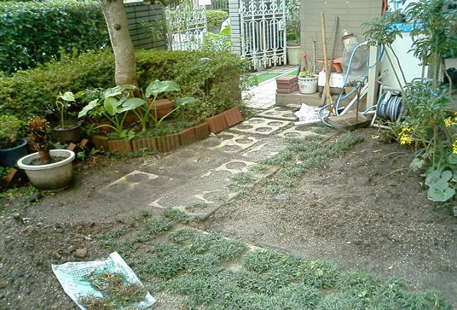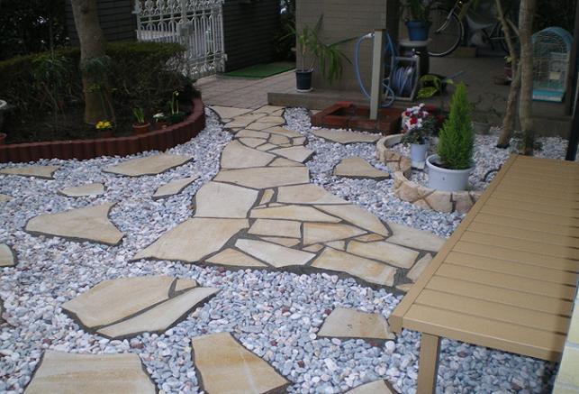 砂利と、乱形石張りで、水はけよく。おしゃれに。