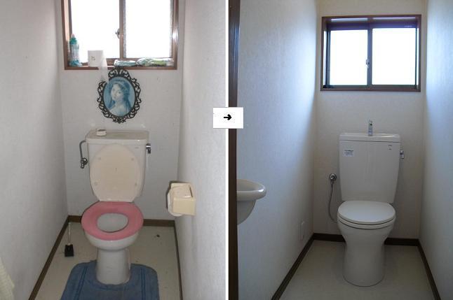 - 古いタイプのウォシュレットは機械部分が大きく場所をとっていました。節水機能のコンパクトな便器に交換する事でおなじスペースでも広く有効活用できるようになります。現状必要のなかった手すりも撤去しました。ルーバーサッシに変えたことで不審者が侵入しづらくなり防犯性もアップしました。