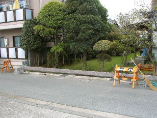 - ブロック塀で視線を遮るクローズ外構を設けました。立派な植木が植えられているのでそれはそのまま残しました。門柱と門扉を設けることで、道路と占有地との境界をはっきりさせる効果もあります。