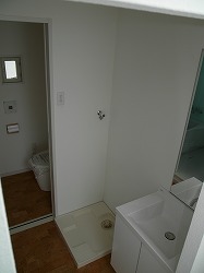 - 洗面台は設置スペースに合わせ、奥行き幅の小さなものを設置し、ミラーキャビネットではなく、ミラーのみを設置することで 狭スペースでも使い勝手の良い洗面となりました。