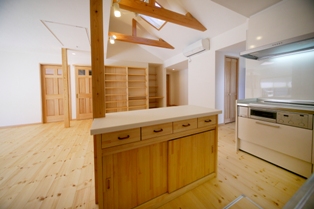 | リフォーム内容 | 勾配天井で隅々まで光を取り込めるようになりました。小屋裏収納も備えています。 リビングにはご主人ご希望の畳スペースを作り、ソファでもフローリングでも畳でもくつろげるよう工夫。テレビ台、棚などは大工さんの作り付けで、高さも自由に変えられます。 |