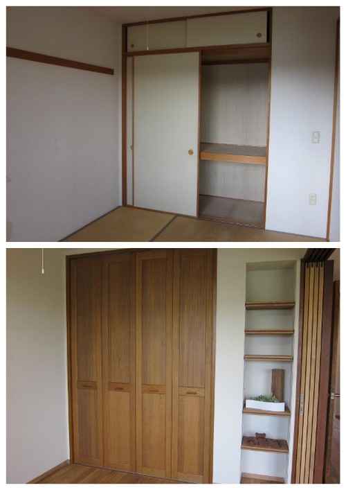 リフォーム内容 | フローリングは栗の無垢フローリングを使用。 珪藻土や、化粧梁など室内に自然素材を取り入れ、まるでおばあちゃんの家の様などこか懐かし良い優しい雰囲気に仕上がりました | ||