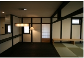 | リフォーム内容 | タイルを使った外壁は表からの視線を遮る効果があります。居間は畳敷きで、和紙貼りの建具で仕切ることができ、赤ちゃんのための寝室も兼ねています。階段は吹き抜けでLDKのアクセントに。花粉症対策として物干し室も設置しました。全体的に和風を意識した造りになっています。 | ||