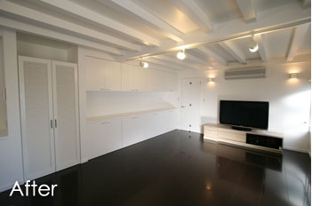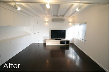 - 貸事務所の三室の壁を取り払い、オーナー夫妻の住居にコンバージョンする計画です。