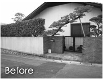 | リフォーム内容 | 庭木を残したまま車一台分のガレージを造り、庭に接する部分に格子を設け防犯にも考慮しました。キッチンは、日中は電気をつけなくても良いくらい明るくなり、リビングもコーブ照明の間接的な明かりで広がりを感じさせます。 | ||