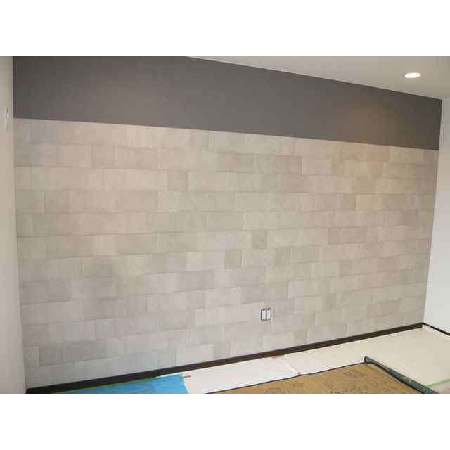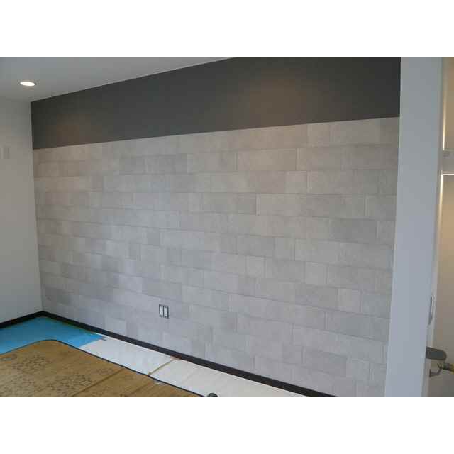 戸建住宅の調湿タイル施工の事例です。オーナー様の奥様からのご希望で、トイレ・洗面室も含めた各部屋の一壁面の一部に施工。仕上がりのバランスも奥様によるものだそうです。調湿タイルは、室内の湿度を調整する調湿効果、ホルムアルデヒドなどの有害物質を吸着する吸着効果、様々な生活臭を吸着・軽減する消臭効果などが期待できる内装壁材。梅雨の湿気を抑え、冬の乾燥を防いで、室内を年中快適な状態に保ってくれます。