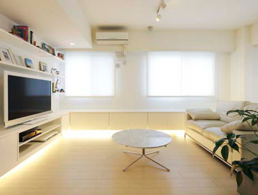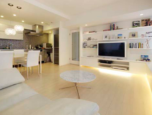 - 約17畳のLDKを広々使えるよう、壁付けのオープンキッチンをご提案。内装材・建具類・家具等全体を白で統一し、スタイリッシュな空間に。