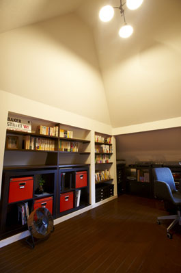 - 小屋裏は書斎であり、ロフトはホームシアターであり…3階部分は趣味と仕事両方を楽しめる「男の隠れ家」的なご主人好みのテイストのとっておきの空間を楽しみながら設えられています。