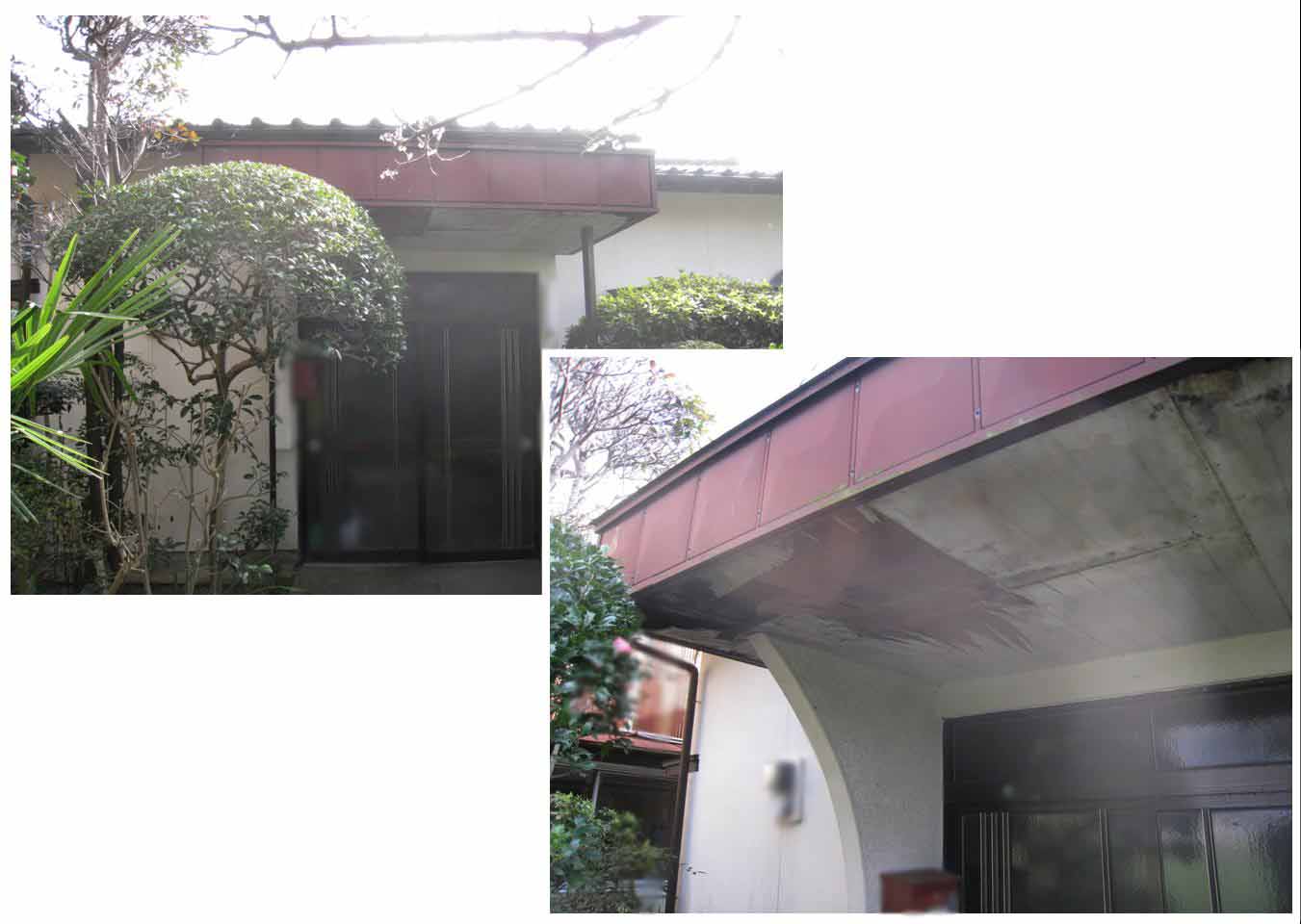 | リフォーム内容 | 【戸建屋外のリフォーム】:玄関(庇)のリフォーム 屋根の板金工事 樋(とい)工事 破風・軒天・柱の外部塗装工事 |