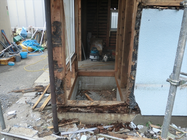| この事例のこだわり | 火災にあい、すすのにおいがとれないことからスケルトンリフォームを行うことにしました。スケルトンにした後に、焼け焦げている木部をケレンし、高圧洗浄し消臭工事を行いました。スケルトン状態になったので構造の補強を行いました。10センチくらいの不陸が生じていたため、床高の調整を行いました。 | ||