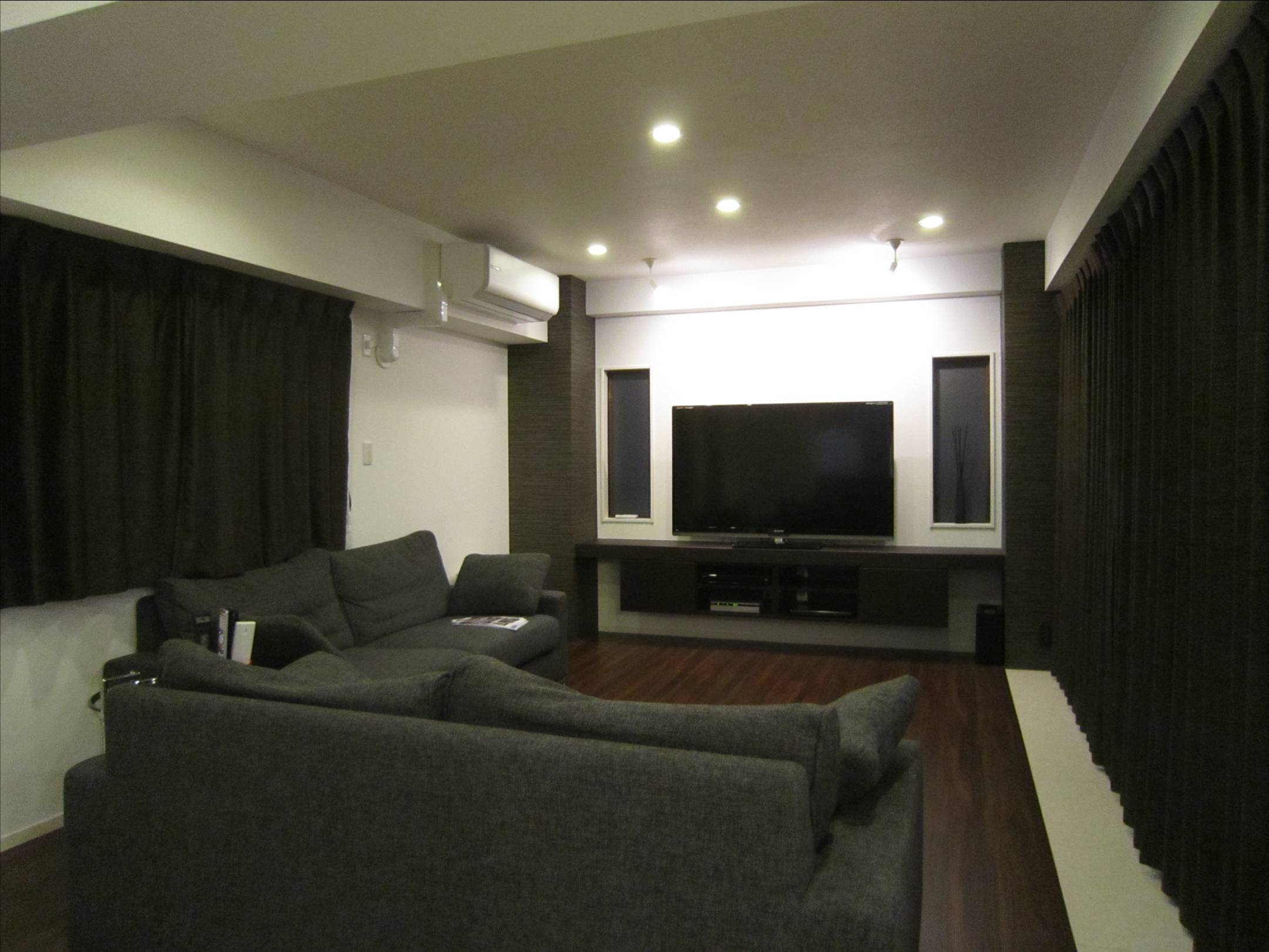 柱型を輸入クロスでシンボリックに仕上げたTVまわり