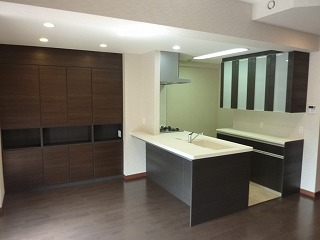 | リフォーム内容 | 全体的にホワイトとブラウンの二色を基調として統一され、 落ち着いた大人の雰囲気の部屋に生まれ変わりました。 モダンな雰囲気を好まれておりましたので、キッチン、浴室、洗面台、トイレ、フローリング、 壁面収納もモダンなテイストに統一いたしました。 |