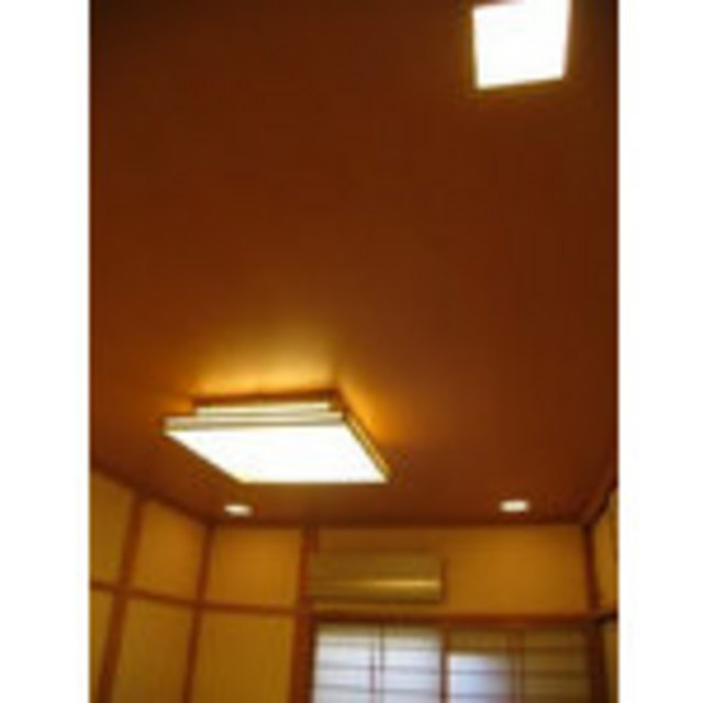 - お客様を迎える空間として普通の和室よりもちょっと変わった和室ということで今回のリフォームをさせていただきました。天井はクロスで仕上げていますが木目の色ですっきり仕上げることで落ち着いた空間になります。補助照明としてダウンライトを4箇所取り付けて全体を明るく、暖かく演出いたしました。