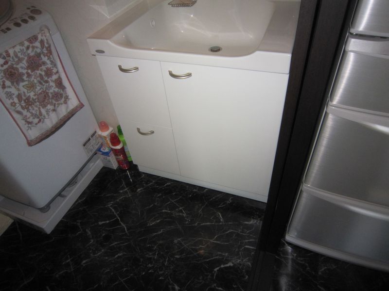 - 選ばれた洗面台に好みのキャビネットがなかったため、シート貼りをしました。