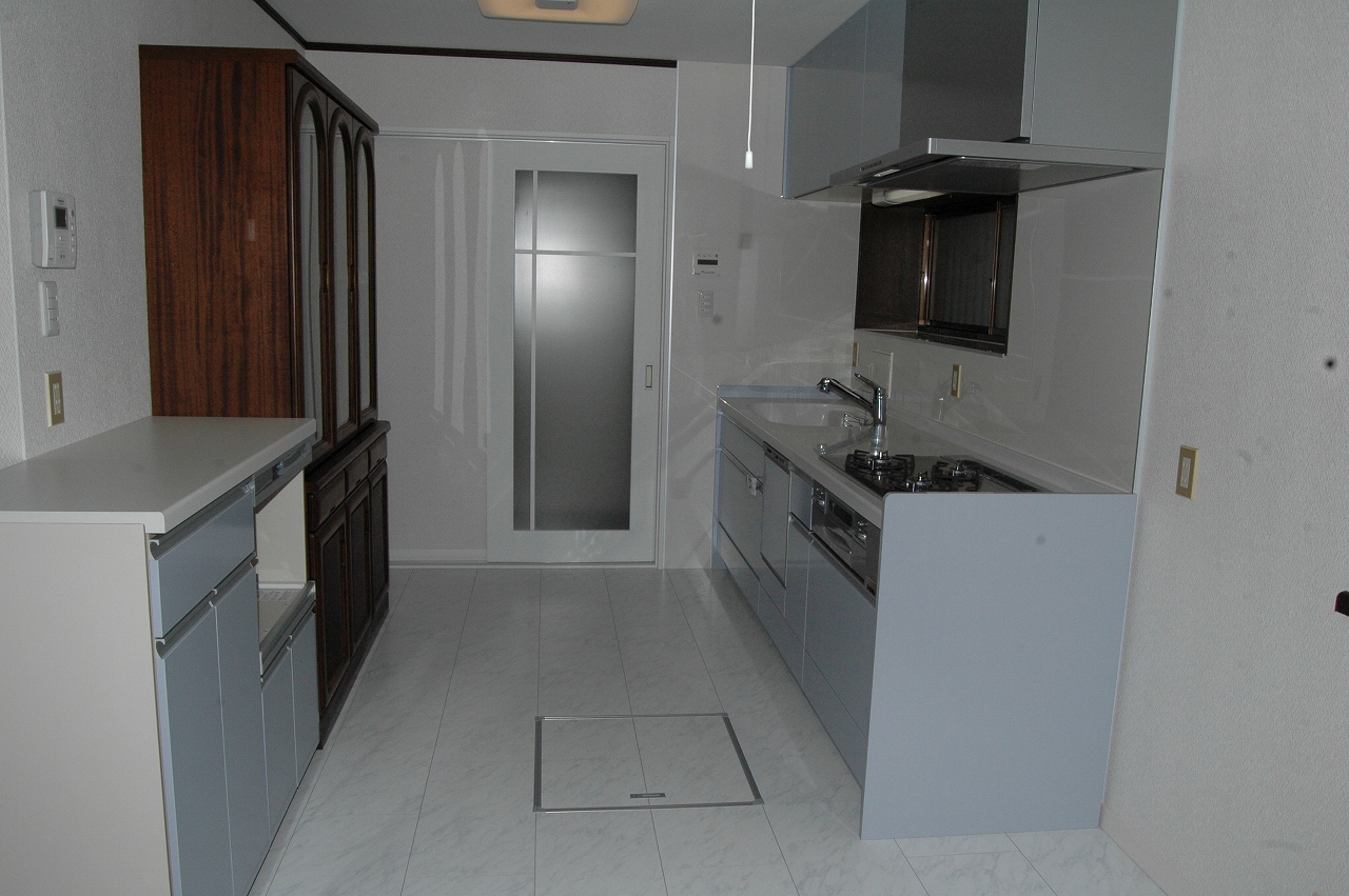 - 古くなったキッチンを新しくし、劣化していた床をやり変え、壁を撤去するなど一部間取り変更をさせていただきながら、LIXILのシステムキッチン及びカップボードを入れさせていただきました。