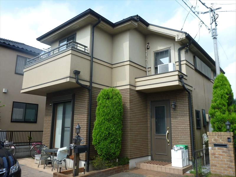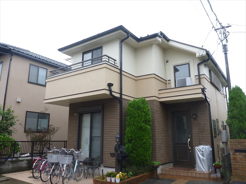 工事期間も予定通りの1日1工程の塗膜乾燥施工となりました。当たり前の事ではありますが、下地作りをしっかり行い、乾燥時間をしっかりと取り作業を行いました。1階2階と色のバランスも落ち着いた感じに仕上がりました。
