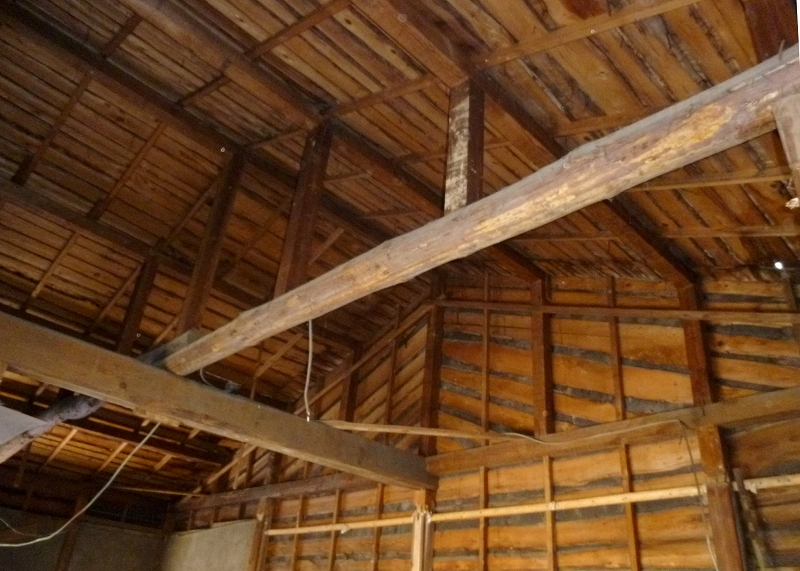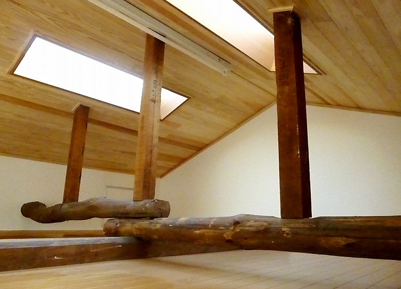 天井裏の梁は丸太で状態も良く、そのまま内装のアクセントとも兼ねて使うことに