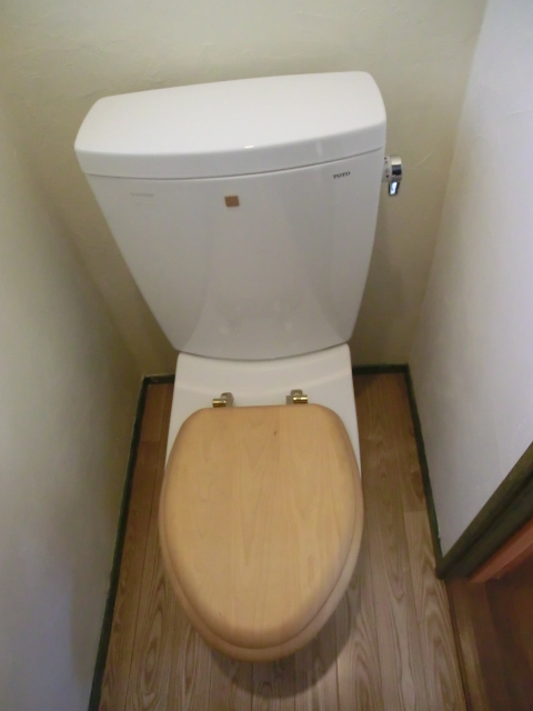 清潔感のあるトイレになりました。便座は木製のものです。 |