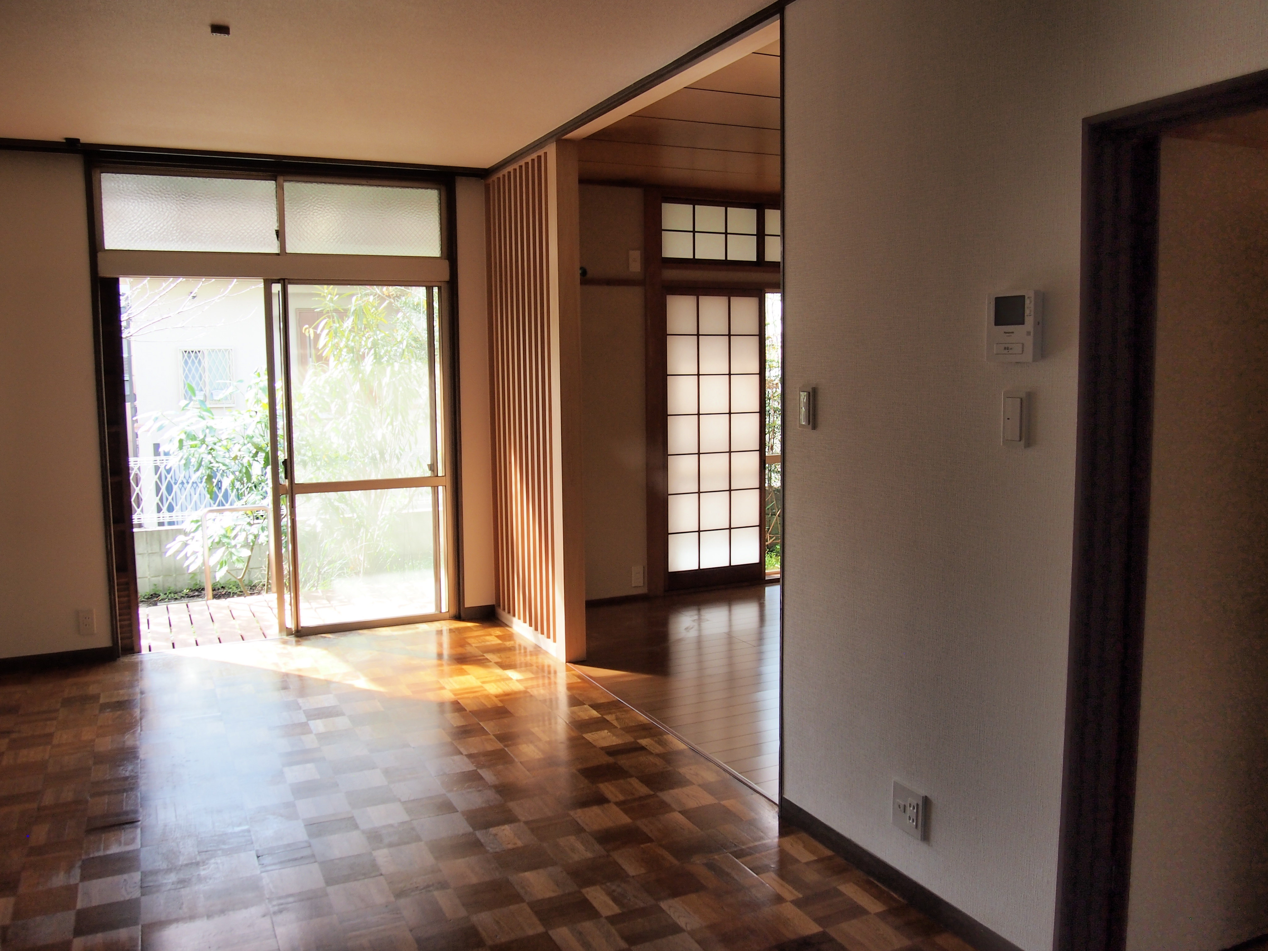 | リフォーム内容 | すべてを新しくするのではなく、所々ご実家の懐かしさを残しながらのリフォームです。 元々和室だった部分は洋室に変更してリビングの延長とし、ご夫婦二人ゆったりと過ごせるリビングになりました。 廊下にはダウンライトを新設することで明るい空間に。 また、楽器がご趣味のご主人様のお部屋は窓を2重サッシにする等、防音対策を行っております。 |