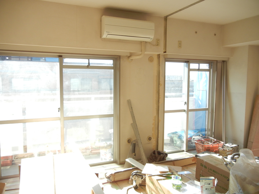 - LDと洋間との境の壁を取り払い広いLDKに改装。明るく開放感のあるLDKになりました。フローリングとクロスは明るくナチュラルな色調をお選び頂きました。