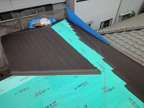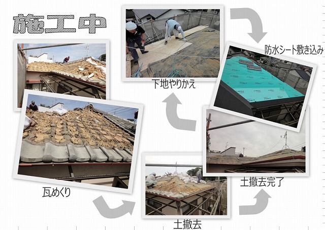 - 耐震補強を目的としたリフォームでした。まず重い瓦屋根をスレート葺きに換えることで、躯体にかかる重量を軽くします。
