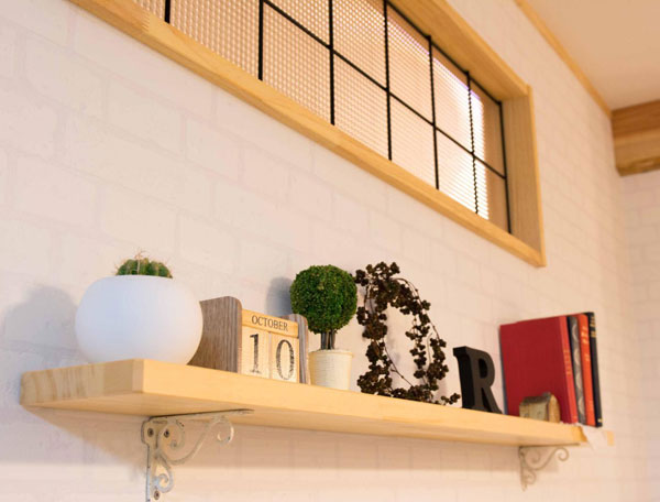 廊下側の壁に取り付けた細長い明かり窓がポイント