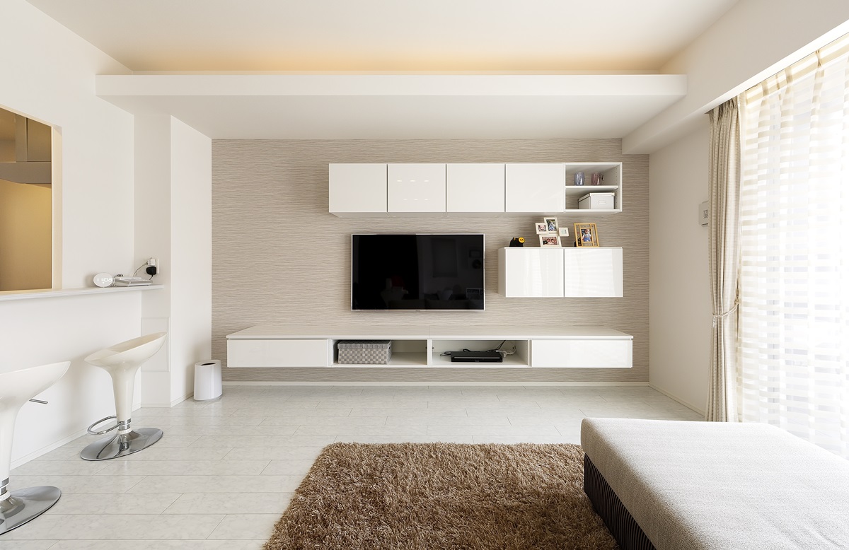 壁面収納付きのテレビボードを造作しました。