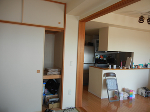 クロス貼りのカウンター壁です