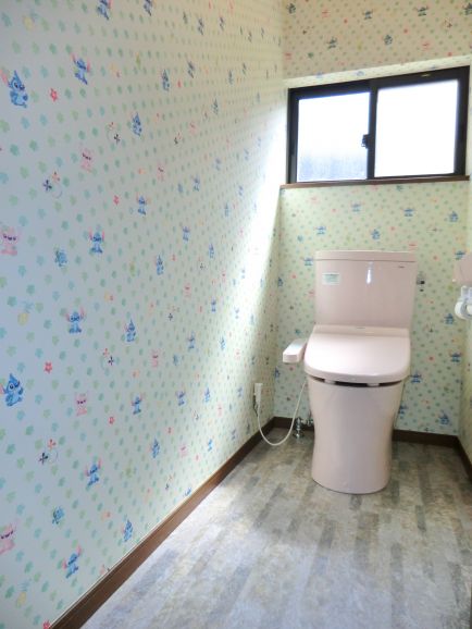 2階のトイレは壁紙にニモを散りばめているので個性的な空間になってます。以前のトイレと雰囲気が変わって新鮮ですね。