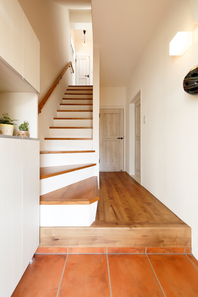 - 内部に合わせた木目調の玄関ドアは、LIXILのリシェント。
