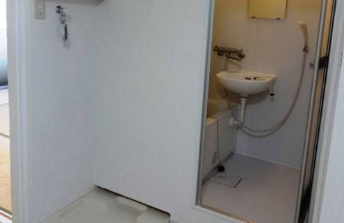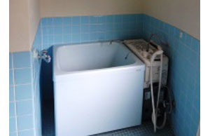 バランス釜は撤去し、ベランダに給湯機を設置。配管工事も必要でした。