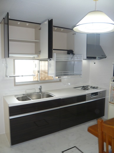 - 開き扉の流し台を、引き出し式のシステムキッチンにリフォームしました。