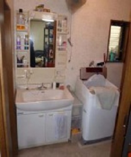- たっぷり収納力のある洗面化粧台で脱衣スペースを広くとった事で家族みんなが広々使えるような洗面ルームになりました。