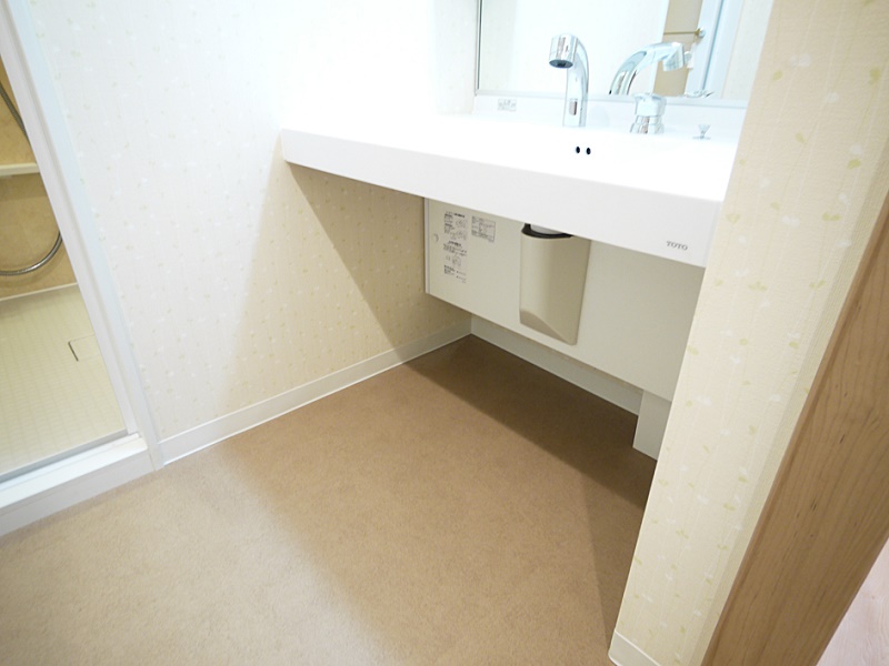 - スペースを広くした洗面台は、車椅子のままでも使えるよう足元の空間を大きく取りました。
