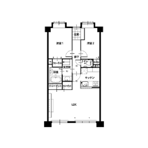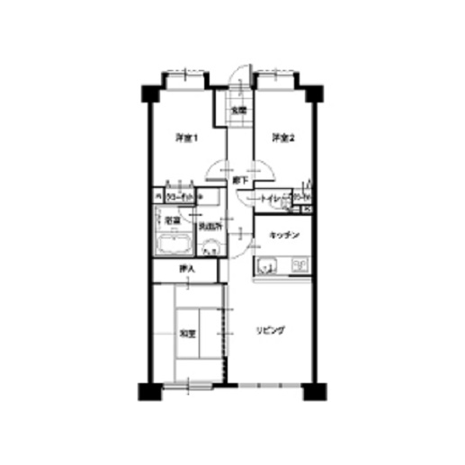 | リフォーム内容 | キッチン+リビング+和室を広いLDKに改装し、旧和室の収納と浴室・洗面脱衣所の位置を変更し洋室1の収納と合わせて改装しました。寝室として使用する洋室1の収納は奥行きが深くなり、布団もしまえるようになりました。 また、洋室1側にあった玄関収納は設備をそのまま利用し、配置を納戸として利用する洋室2に移動しました。 |