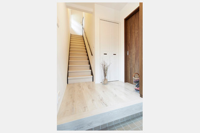 - 収納の扉を変え、住まい全体の雰囲気を合わせた玄関ホール。「ドアなど、既存の使えるものはできるだけ活かしてリメイクしたため、どうしても経年による不具合などがありますが、迅速に対応してくれました。アフターも安心して任せることができますね」とAさん。