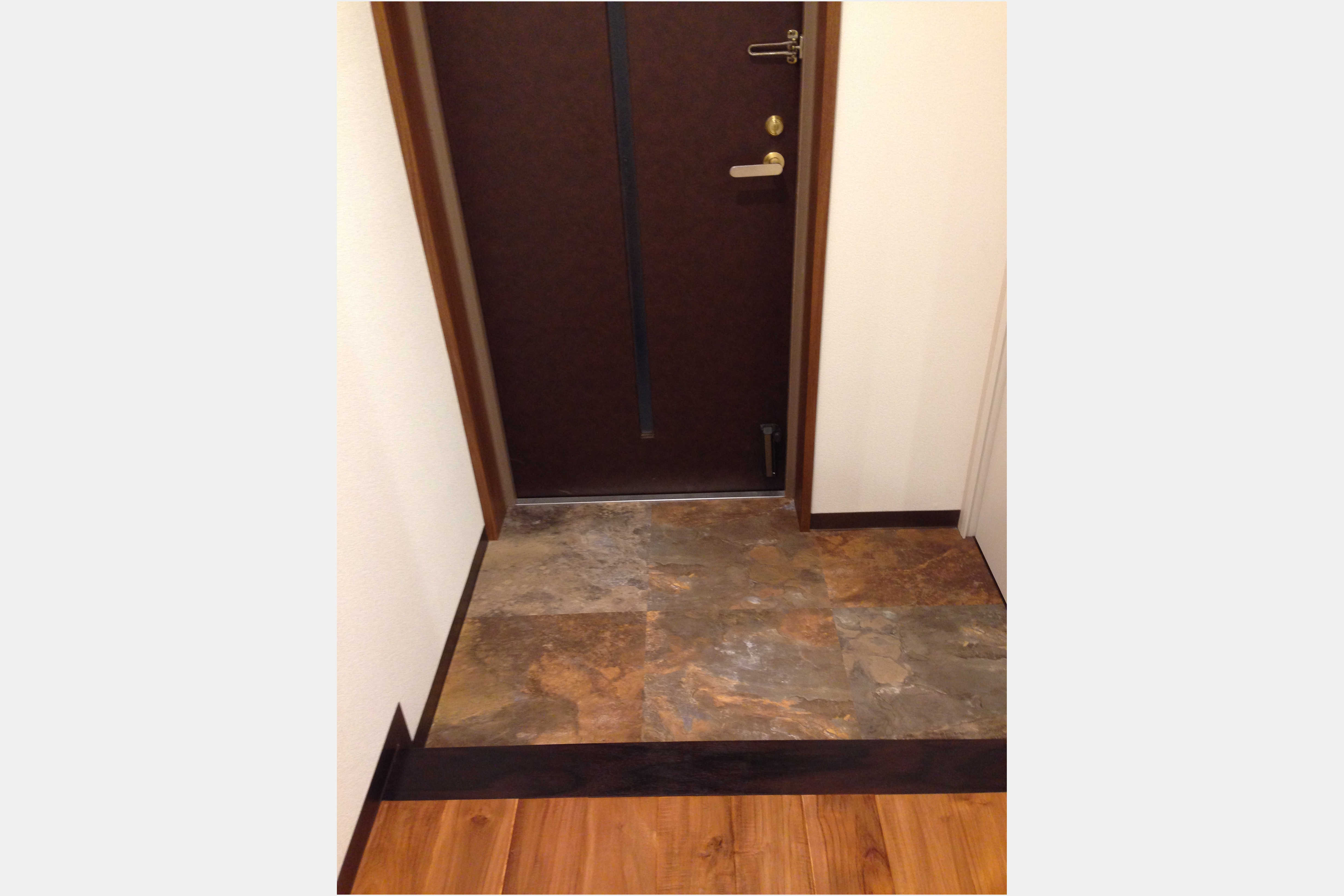 | リフォーム内容 | 玄関からリビングにかけて無垢のチーク材フローリングを床に貼りました。ダイニングテーブルは備え付けの杉の一枚テーブルを置き、キッチンから対面になるようにしました。 洗面所内もガラスモザイクタイルを一面に使い、鏡もスタイリッシュな鏡にしました。 全体的な色もバランス飽きの来ない色合いになっております。 |