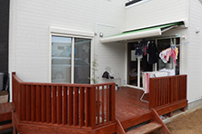 支給品以外の部分内装、家具とのマッチングをリフォーム会社さんと一緒に考えスムーズに商品選び施工と進みました。ウッドデッキとオーニングは雨の日の洗濯物対策と内装のバランスで悩みましたが、大変満足したものになりました。